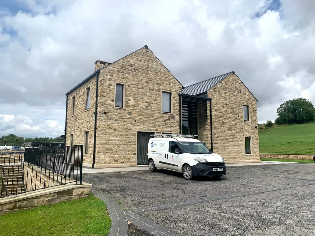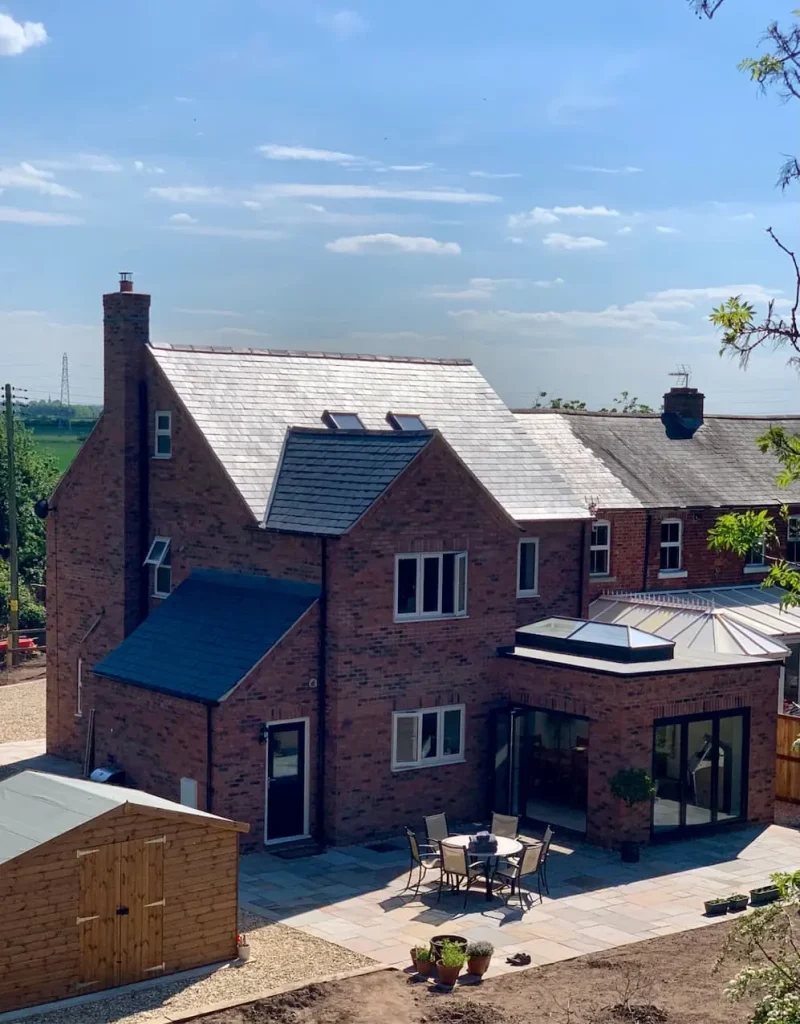 Natural Slates, handmade timber windows/doors, triple glazed aluminium sliding/folding patios